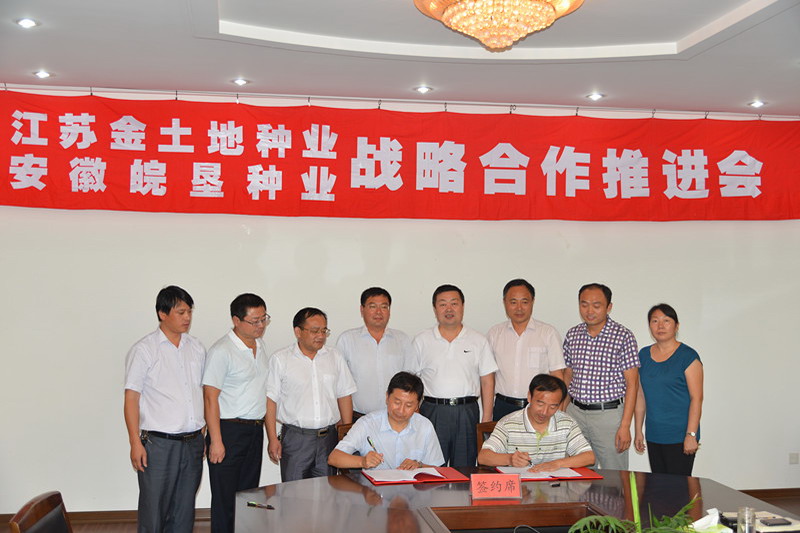 皖垦种业副总经理徐成银,金土地种业副总经理王保和、徐卯林、陆成彬,大圹圩农场场长汪登松等见证了合作签字。(夏庆芳)