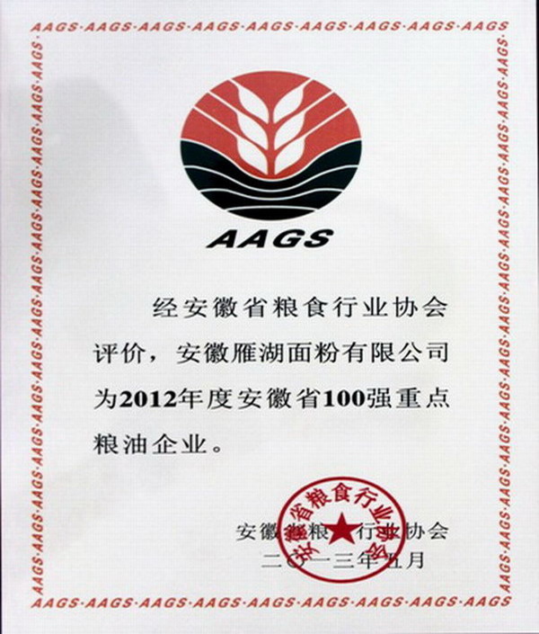 雁湖面粉公司:上榜全省重点粮油企业百强