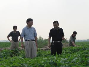卓民副总经理(右二)在大田查看大豆长势。(杨