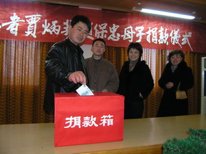 目前,向贾丙英、赵保忠母子献爱心捐款活动仍在 进行中。图为机关工会组织向贾丙英母子捐款活动 情景.(杨登宏)